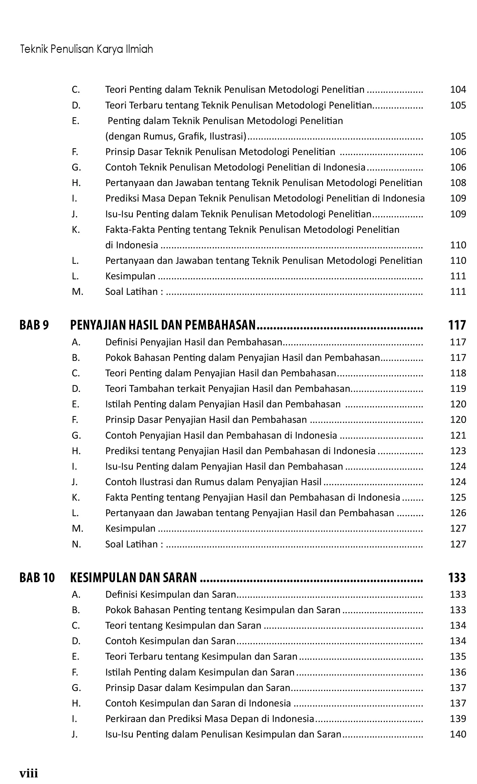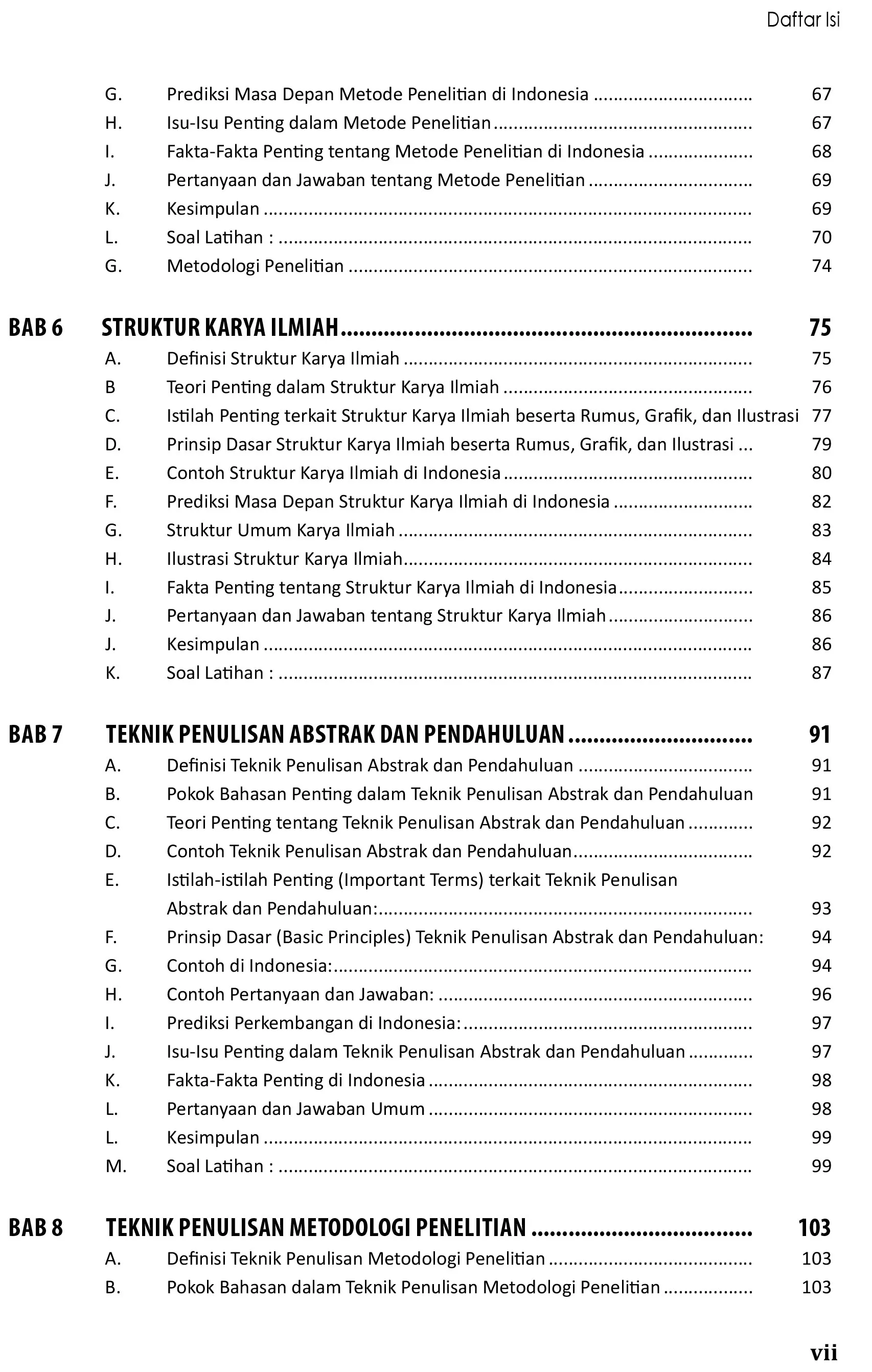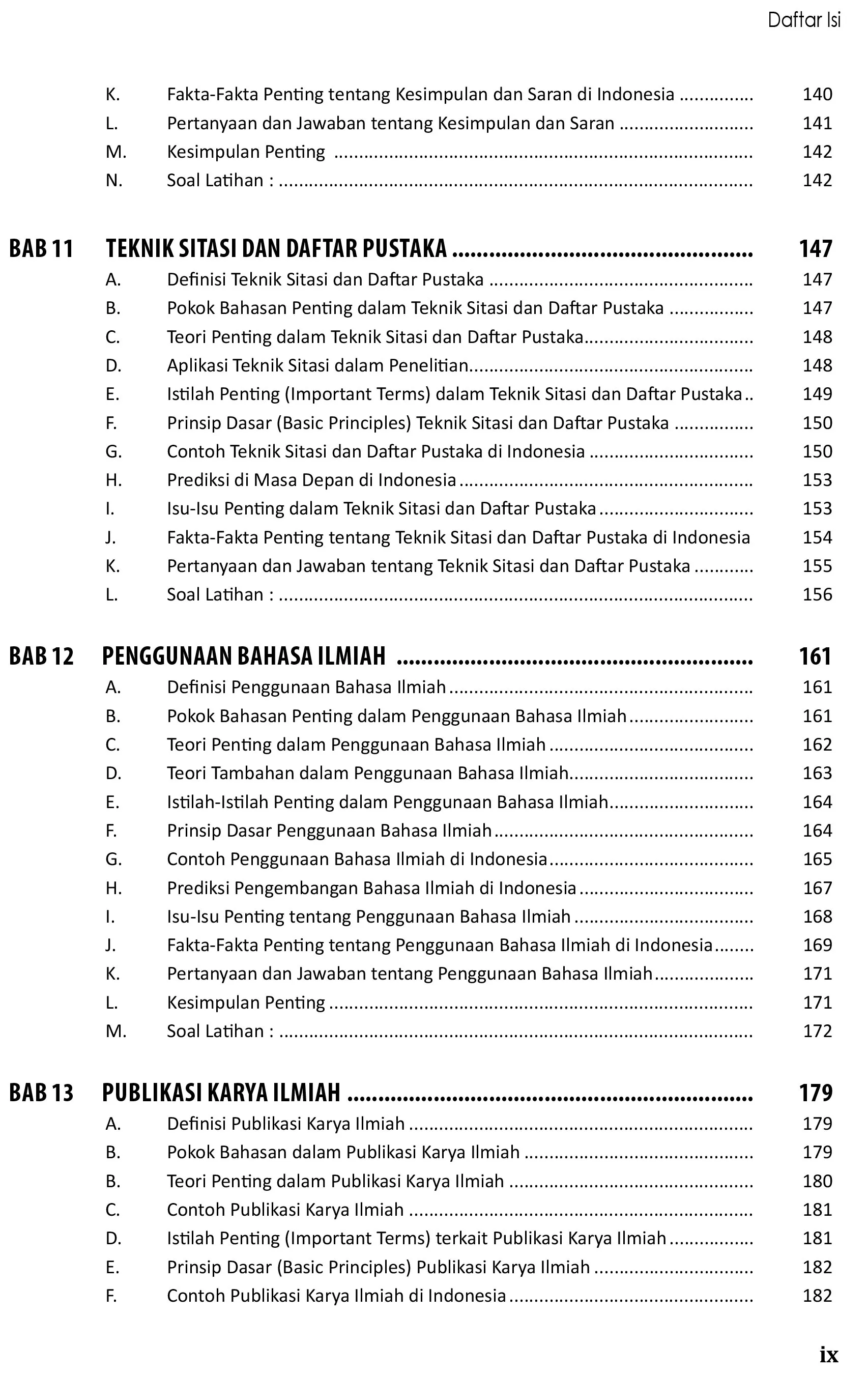 Karya ilmiah tidak bisa dipisahkan dalam dunia pendidikan. Karya ilmiah memiliki peranan yang sangat penting dalam perkembangan dunia pendidikan. Dalam ranah Perguruan Tinggi ada tiga aspek pengembangan tri dharma perguruan tinggi. Aspek tersebut antara lain bidang pendidikan, penelitian, dan pengabdian kepada masyarakat. Ketiga aspek bidang ini, tentunya memiliki kaitan yang erat dengan karya ilmiah. Buku Teknik Penulisan Karya Ilmiah ini membahas teori dan praktik dalam menyusun karya tulis yang memenuhi kaidah ilmiah. Buku-buku ini biasanya mencakup berbagai aspek, mulai dari pengenalan konsep dasar karya ilmiah, langkah-langkah penyusunan, struktur karya ilmiah, hingga etika penulisan. Bagian lainnya membahas langkah-langkah proses penelitian dari menentukan topik hingga menyusun laporan, serta etika penulisan ilmiah seperti menghindari plagiarisme dan memahami hak cipta. Bagian terakhir mengeksplorasi tren modern seperti digitalisasi, manajemen referensi dengan software, kolaborasi internasional, dan pengaruh media sosial. Buku ini adalah referensi esensial bagi siapa saja yang ingin meningkatkan kemampuan menulis ilmiahnya.